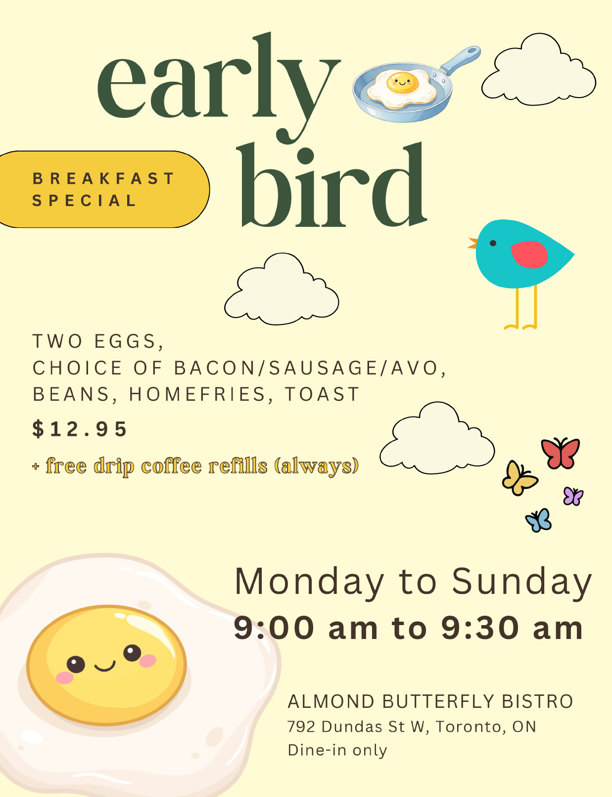 Brunch served daily until 4pm at Almond Butterfly Bistro
